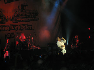 When the Pistols split up in 1978, I would never have been able to imagine myself cycling across London at the grand old age of 44 to see them, in their fifties, play live again. But there we were last night - me, T-Lo and former Heaver Gavin, who we bumped into outside the gig. Playing in front of a backdrop of two giant combine harvesters, the band ripped through most of their back catalogue (i.e. the whole of Never Mind the Bollocks, a couple of b-sides, a few covers and 'Belsen was a Gas' reworked as 'Baghdad was a Blast'), with John Lydon camping it up like a chortling punk rock pantomime dame. This is pretty much why the Pistols still work as a live experience - the set is absolutely solid, with no danger of being diluted by new songs (though the encore versions of Silver Machine and Roadrunner were admittedly a bit flabby). The sound was crisp and loud and demolished the myth that the Pistols couldn't play - they could at the time and they still can. I suppose that in a way the gig was like punk rock's answer to 'The Good Old Days', but 'God Save the Queen' blasting out a full volume still sends a shiver down the most cynical of spines and reaffirms the Pistols as national treasures.